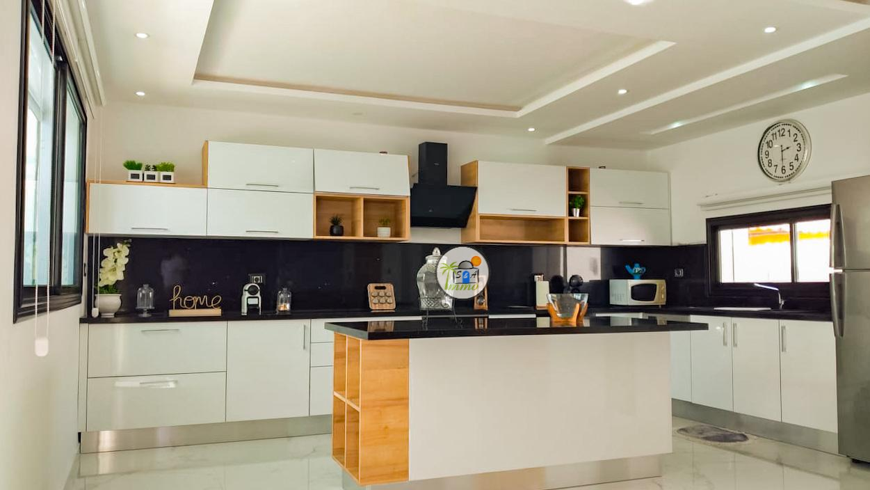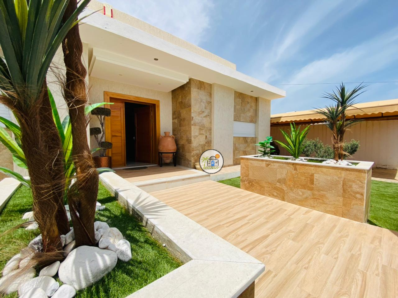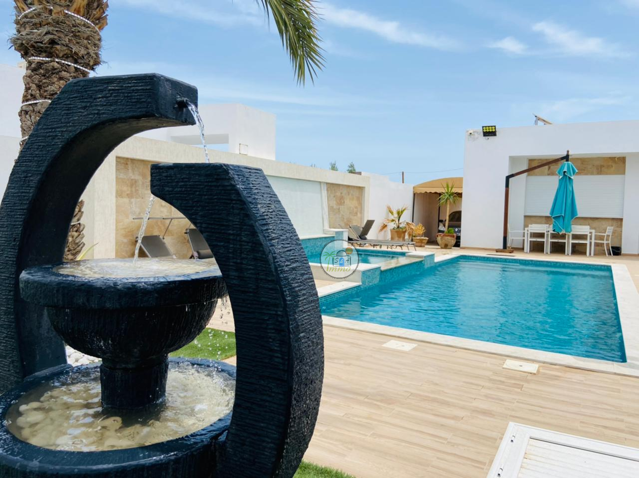 Superbe Maison de plain-pied, avec sa piscine, le tout en pleine nature Djerbienne. Une niche pour chiens, un abri voiture. Cette maison est située à 10 minutes des plus belles plages de Djerba et de la lagune, Dar Djerba. La villa "BINASSA" est composée des 3 chambres dont une suite parentale avec salle de bain privée, Une salle de bain douche Italienne, Une cuisine américaine et Séjour, La climatisation est de la partie, une piscine.