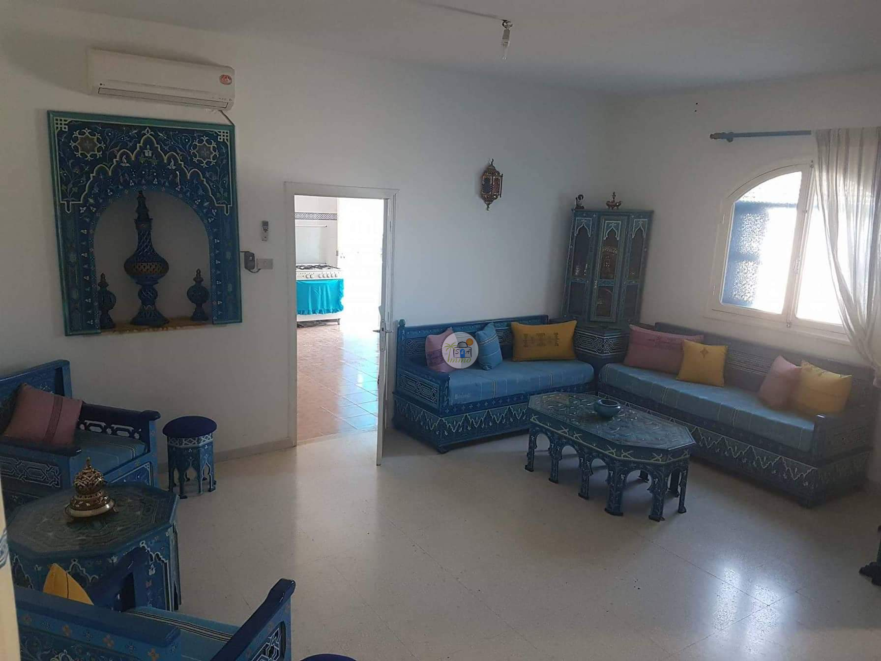 La villa "JIHEN" est composée du 3 chambres , Salle de bain , Salon ,Une cuisine équipée, La climatisation est de la partie et Une piscine .