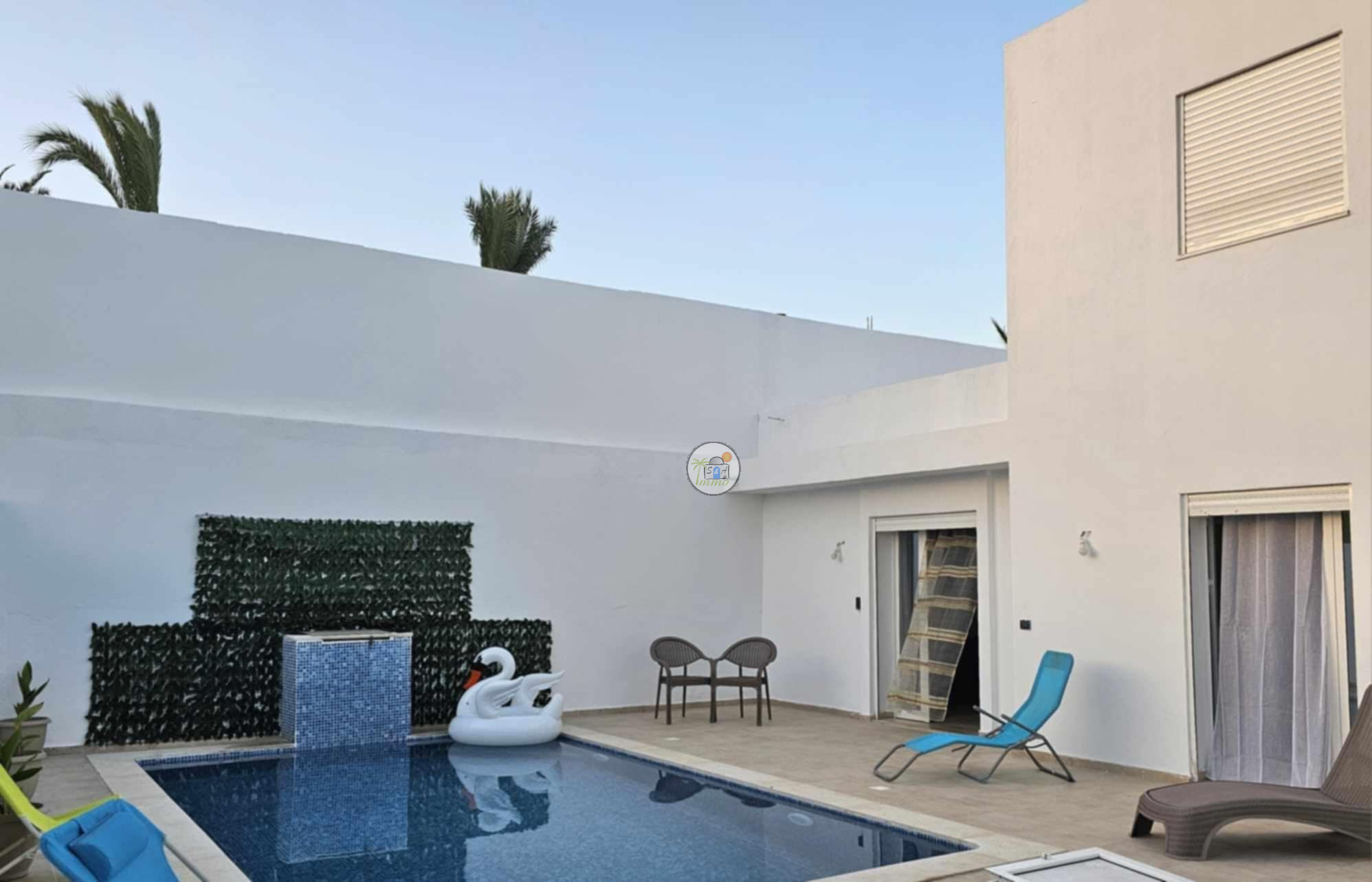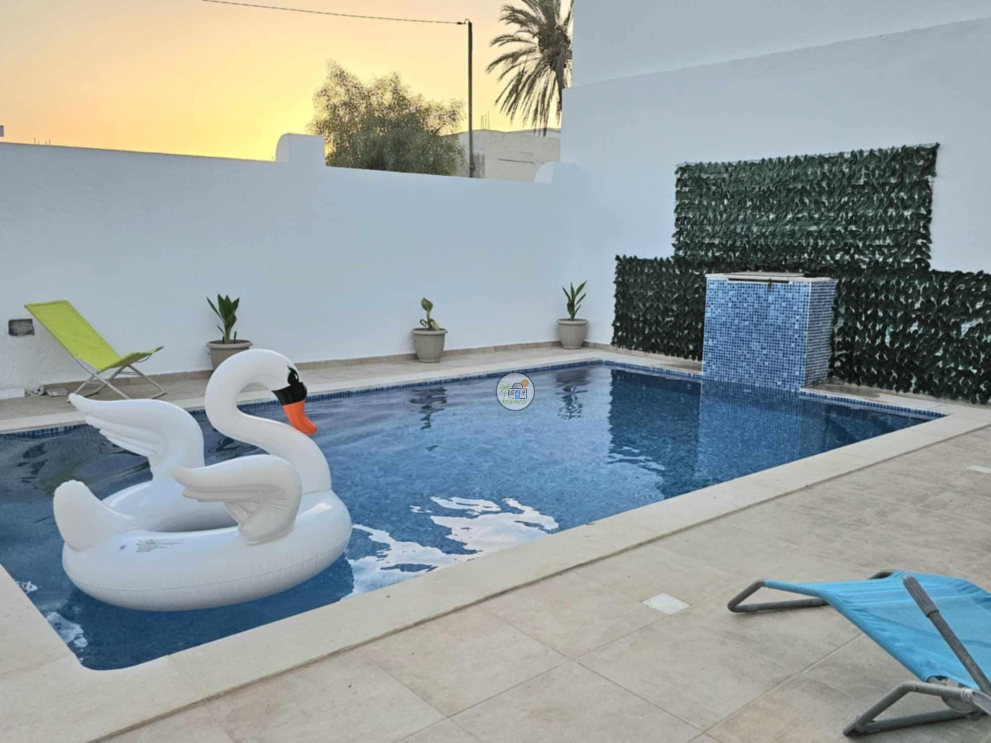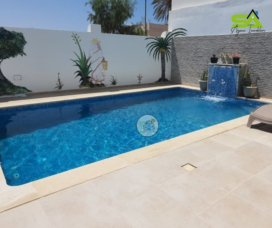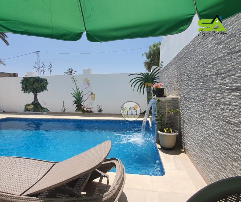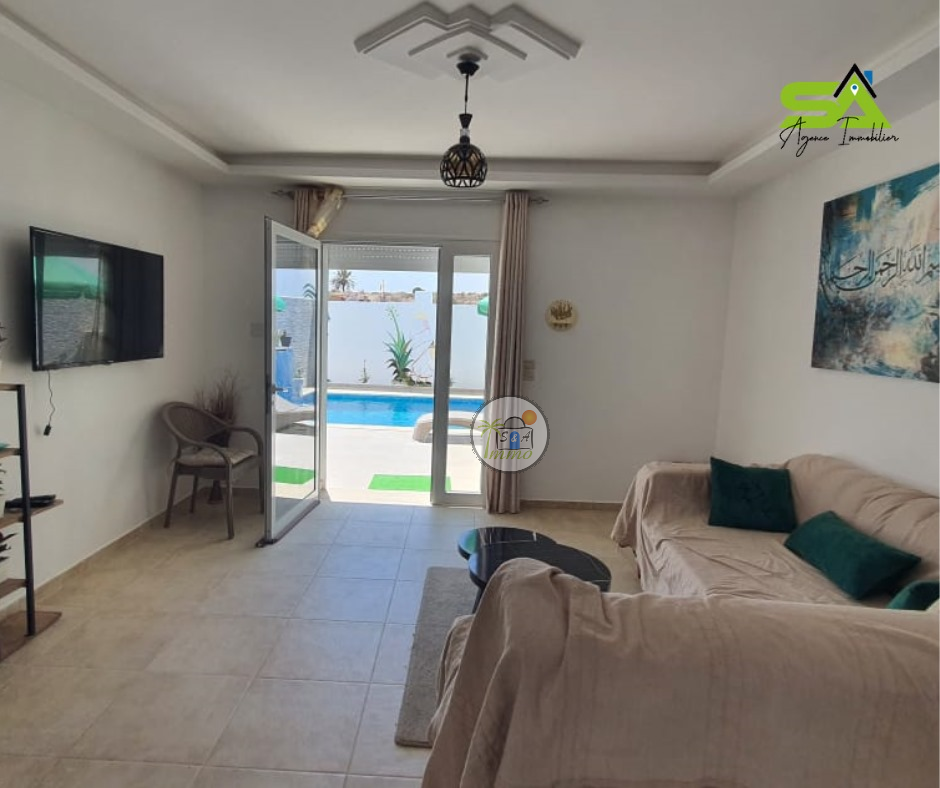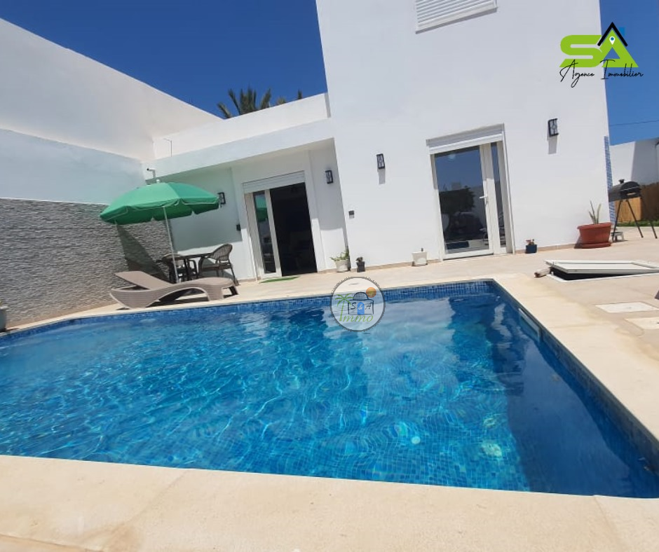 ✨Villa "Meryem"✨ Réf : SA/309 ? location annuelle ?️ ? Très belle villa avec piscine à Djerba ? ✅Villa "Meryem" de Luxe avec piscine située à la zone Touristique, splendide et luxueuse. ✅Prés de toutes commodités. Elle compose de : d’un salon qui donne sur la terrasse une vue sur la piscine une cuisine bien équipée 2 chambres 1 salle de bain. Climatisation Une piscine